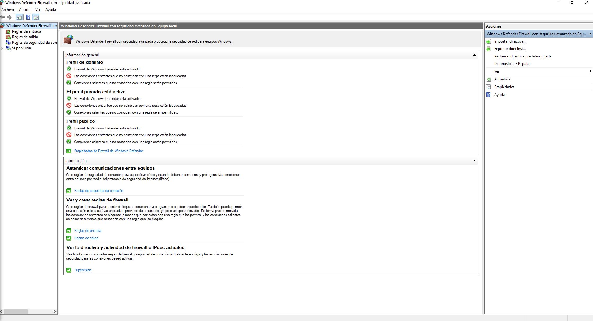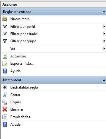 Es necesario habilitar los puertos utilizados por la plataforma Netcontent para que no tengan ninguna restricción desde el lado del sistema operativo. Para esto debemos dirigirnos al Firewall de Windows y visualizar las "Reglas de Entrada" y las "Reglas de Salida".