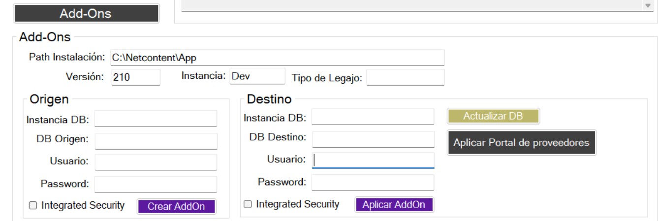 Opcional: Haga click en el botón "Add-Ons" para importar los Expedientes existentes a esta instancia de instalación.