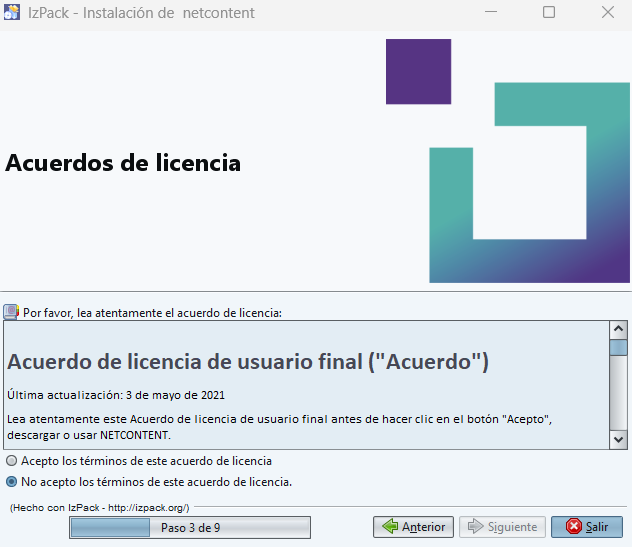 Necesita tener privilegios de administrador para poder instalar los productos Netcontent. Si no tiene derechos de administrador en el equipo en el que quiere instalar Netcontent, póngase en contacto con el administrador de su red.