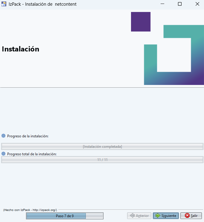 Se muestra en la siguiente ventana el estado de instalación. Al finalizar, por último, presione "Siguiente".