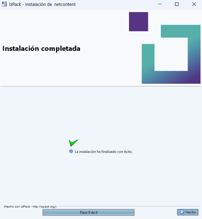 Al ver el resultado de la instalación presione el botón "Hecho".